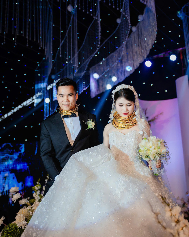 Trong video, cô dâu, chú rể được người thân tới tấp trao vàng. Cô dâu đeo kiềng vàng kín cổ, chú rể cũng đeo nhiều vàng ở cổ và tay. Video thu hút hơn 10.000 lượt “thả tim” và hàng nghìn lượt bình luận quan tâm.