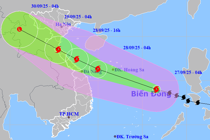 Trong đó, từ gần sáng 28-30/9, ở Bắc Bộ và khu vực từ Thanh Hóa đến Huế có khả năng xảy ra một đợt mưa lớn diện rộng với tổng lượng mưa phổ biến từ 100-300mm, cục bộ có nơi trên 400mm; riêng khu vực đồng bằng Bắc Bộ và từ Thanh Hóa đến Hà Tĩnh phổ biến từ 200-400mm, cục bộ có nơi trên 600mm.