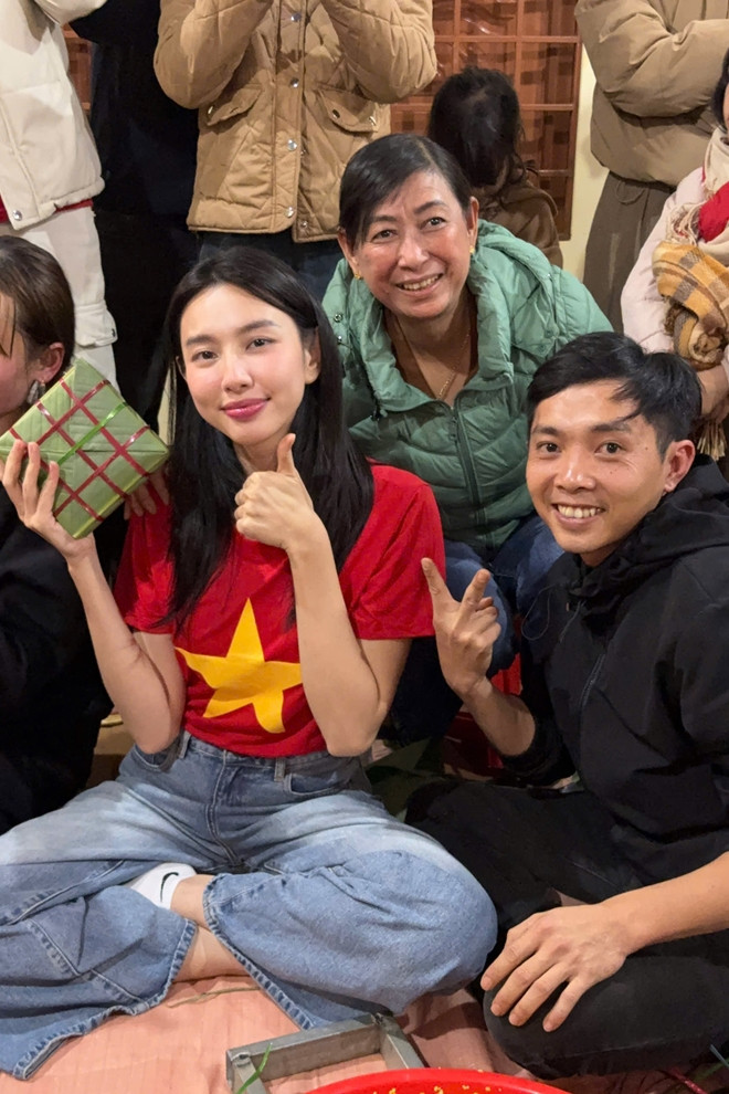 Trong lúc chờ bánh chín, cả nhóm đã cùng người dân theo dõi trận chung kết ASEAN Cup 2024 giữa Việt Nam và Thái Lan. Hình ảnh Thùy Tiên hòa mình cùng mọi người cổ vũ cho đội tuyển nhanh chóng lan tỏa trên mạng xã hội.