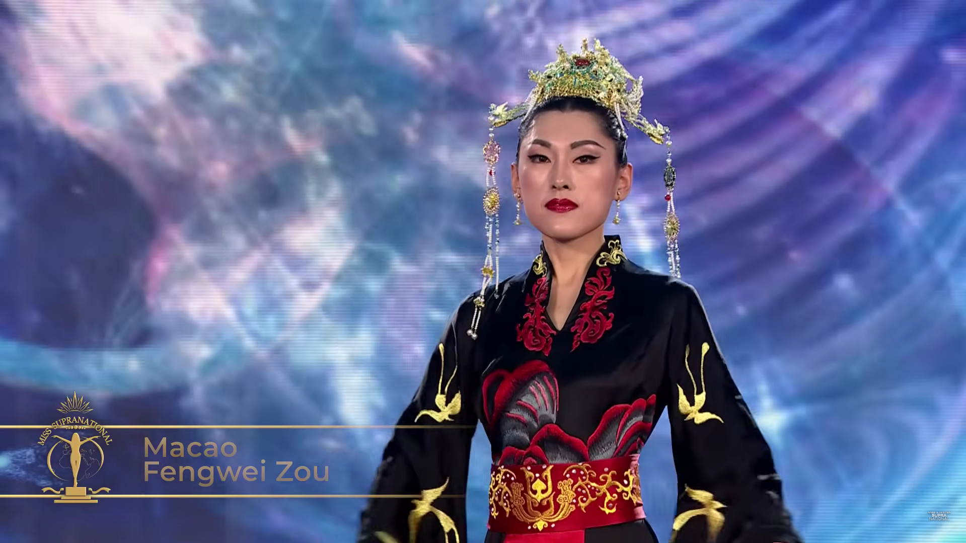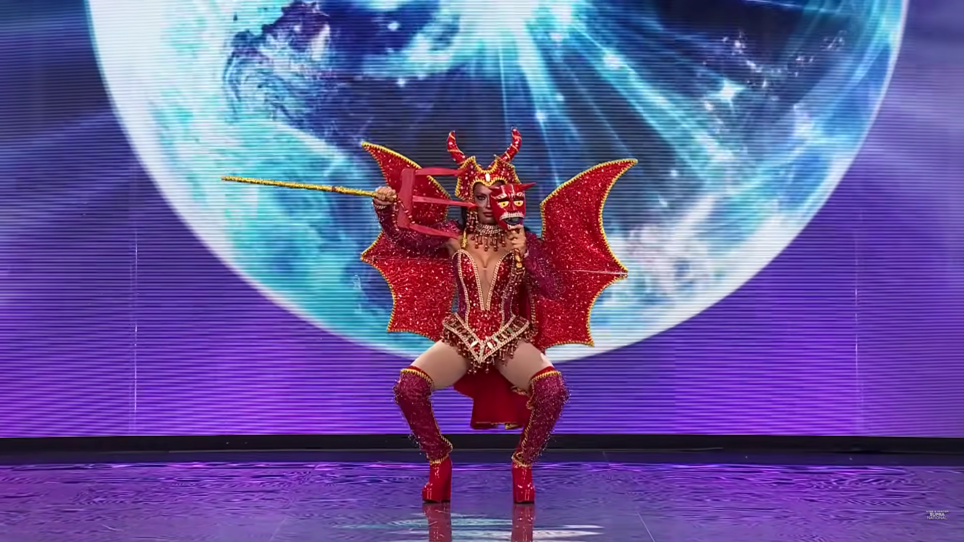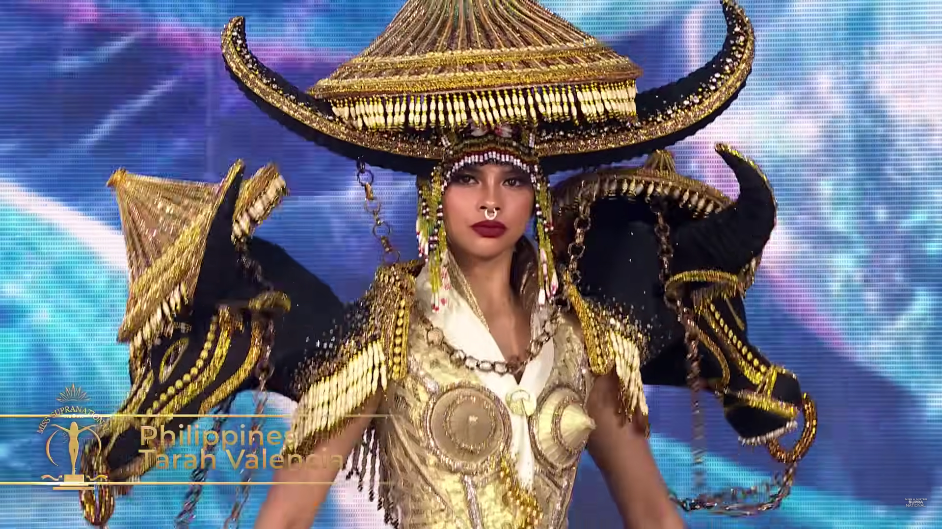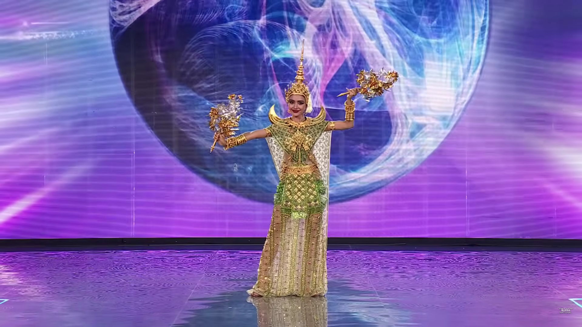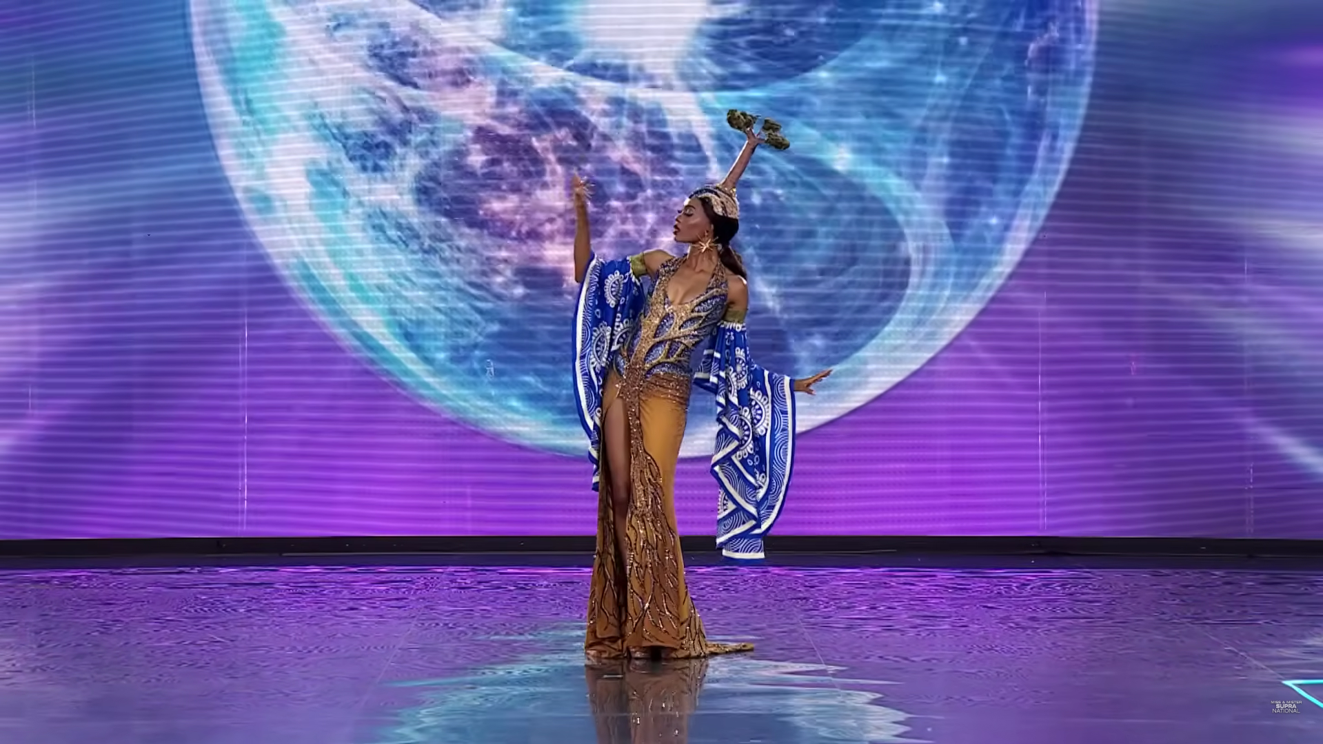 Đại diện Việt Nam - Võ Cao Kỳ Duyên gây ấn tượng khi hóa thân thành một tô phở Hà Nội ăn kèm quẩy. Thiết kế mô phỏng chiếc tô sứ hoa lam quen thuộc đi kèm các chi tiết như thịt bò, rau thơm, quẩy và chén nước chấm đặt trên đầu. Dù bộ trang phục khá cồng kềnh, Kỳ Duyên vẫn tự tin sải bước, nở nụ cười rạng rỡ với đạo cụ.