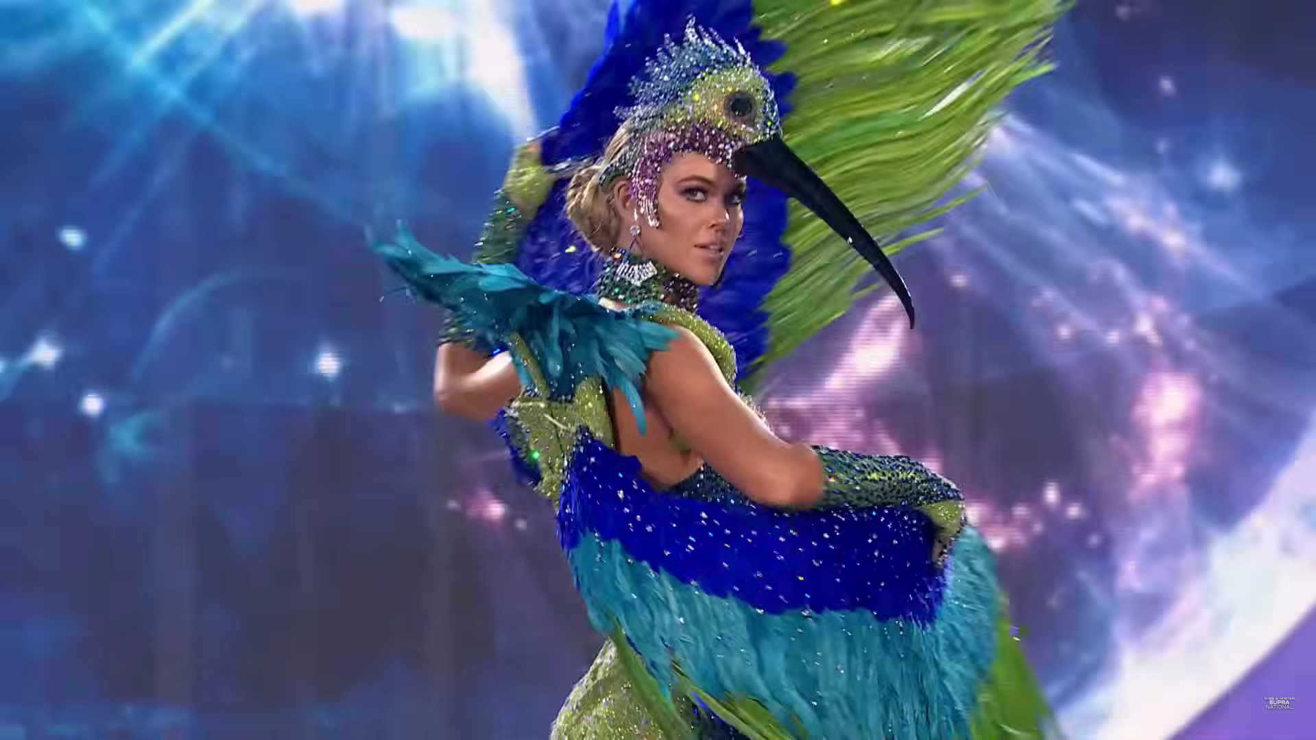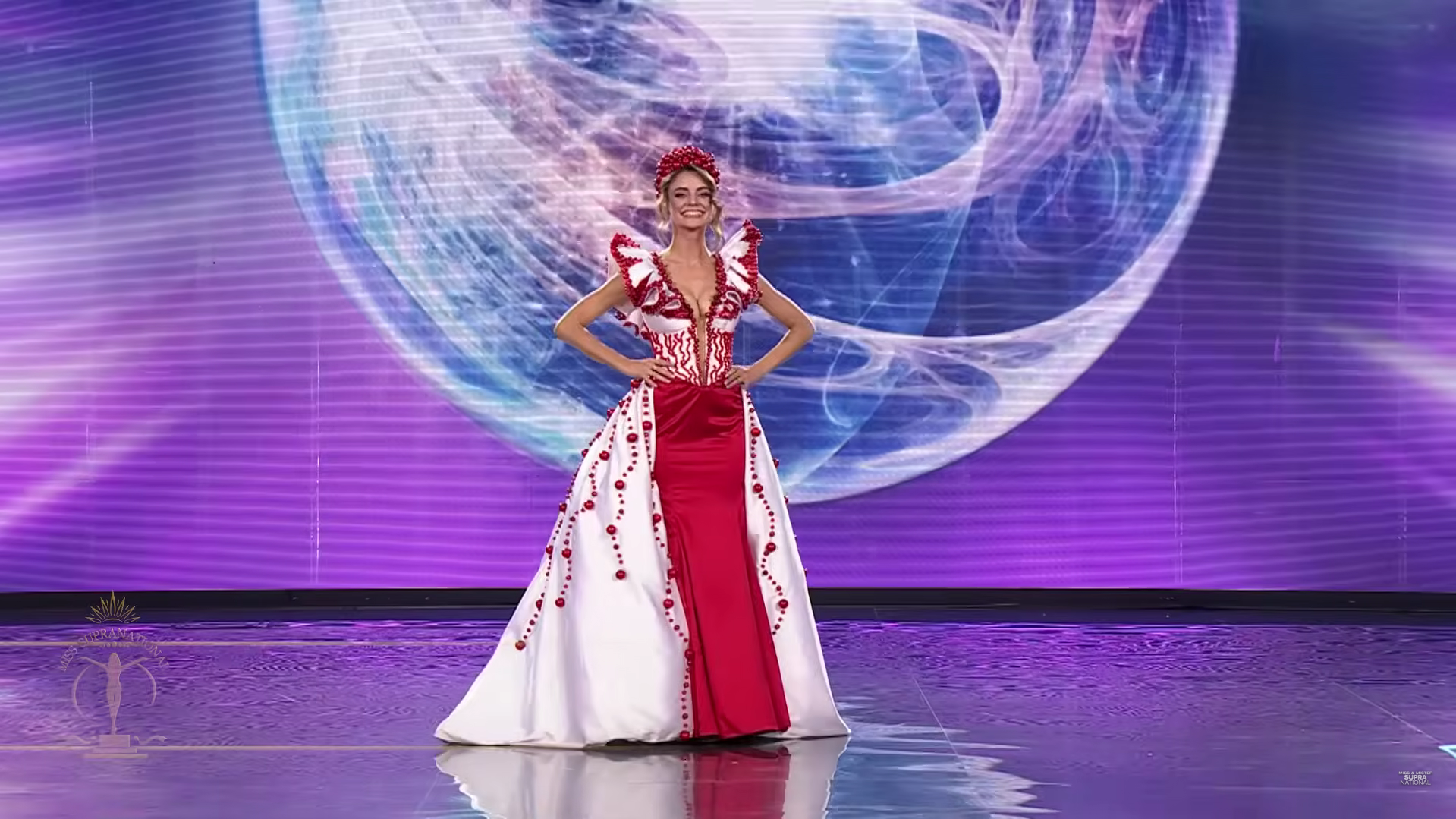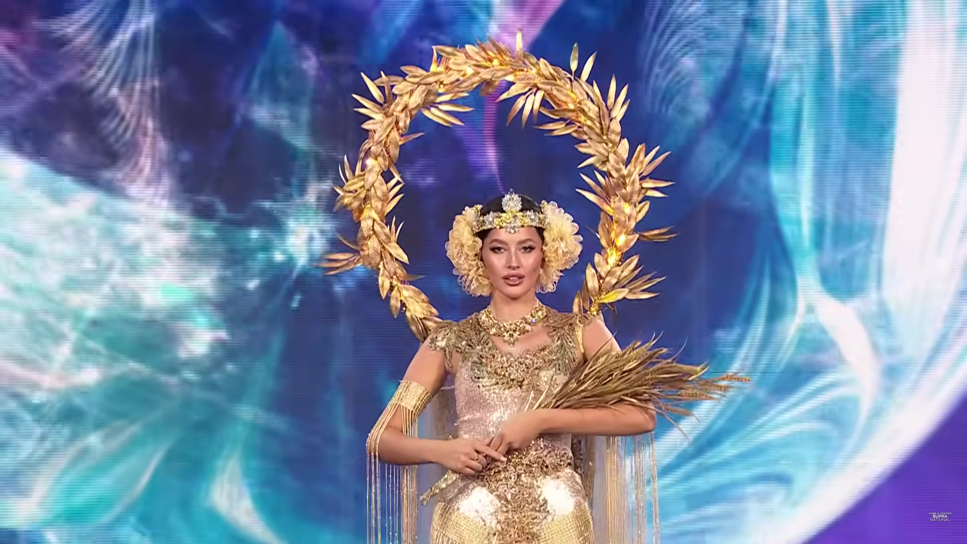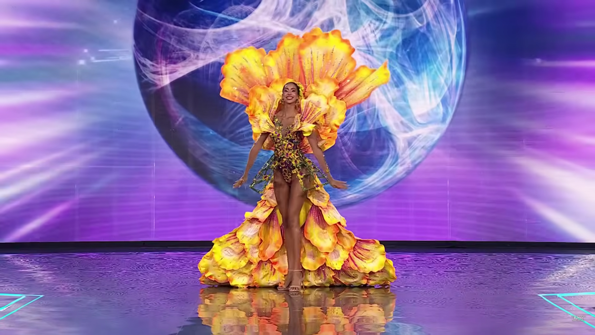 Đại diện Việt Nam - Võ Cao Kỳ Duyên gây ấn tượng khi hóa thân thành một tô phở Hà Nội ăn kèm quẩy. Thiết kế mô phỏng chiếc tô sứ hoa lam quen thuộc đi kèm các chi tiết như thịt bò, rau thơm, quẩy và chén nước chấm đặt trên đầu. Dù bộ trang phục khá cồng kềnh, Kỳ Duyên vẫn tự tin sải bước, nở nụ cười rạng rỡ với đạo cụ.