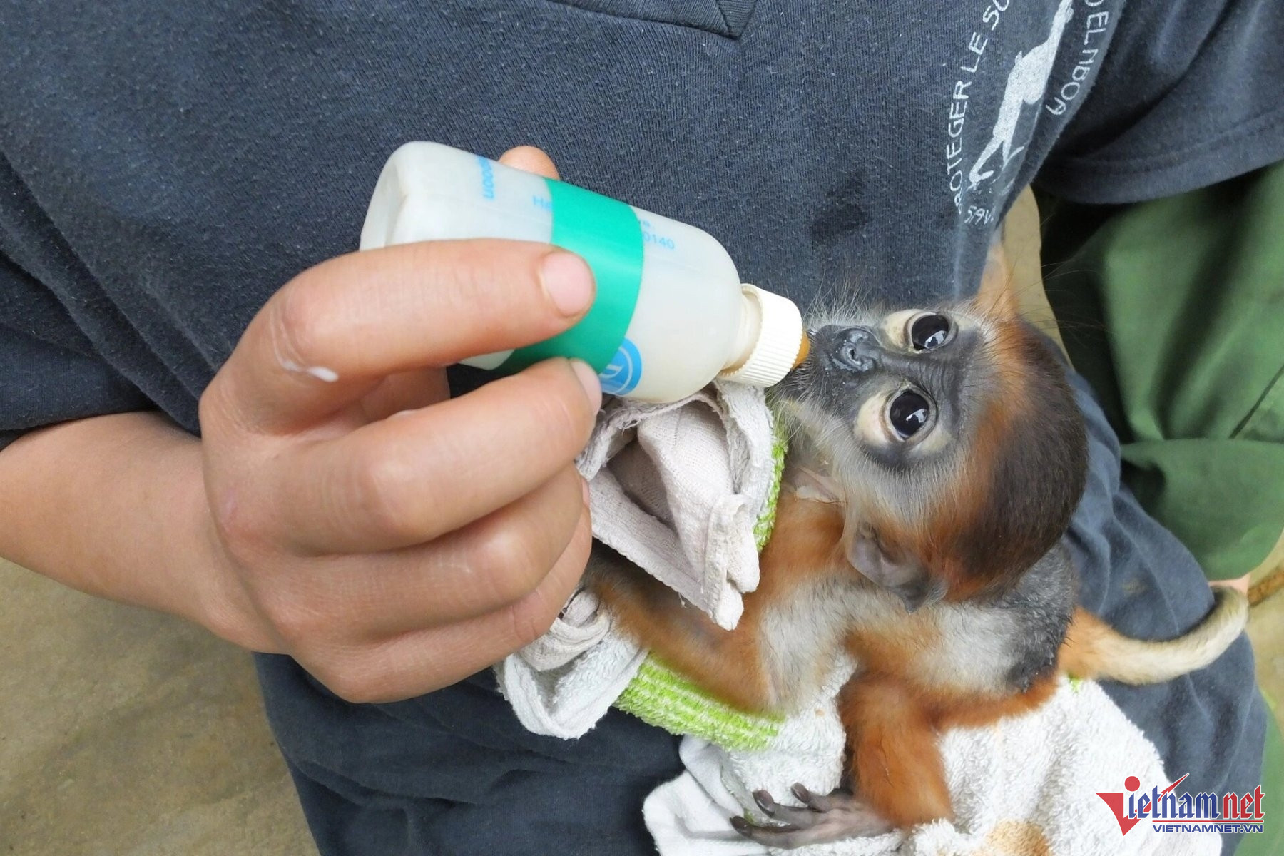 Ngắm 'nữ hoàng linh trưởng' ăn lá, bú bình ở Vườn quốc gia Cúc Phương