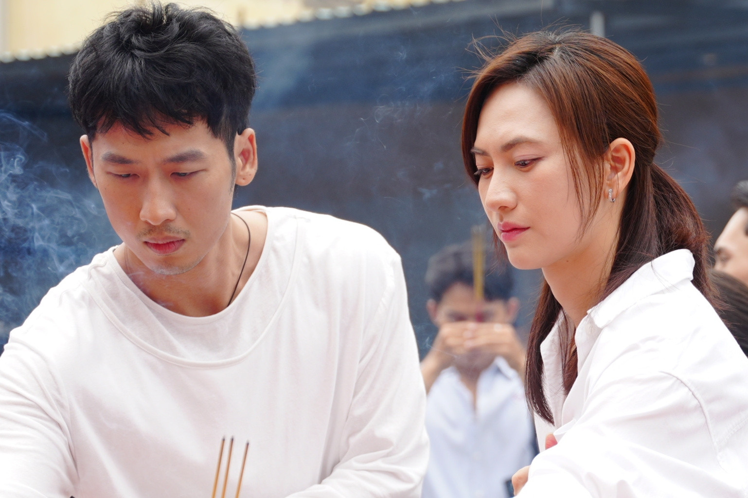 Tại buổi công bố dự án, hai diễn viên Tuấn Trần và Quách Ngọc Ngoan vắng mặt do đang ghi hình phim cổ trang Hộ linh tráng sĩ ở Ninh Bình.